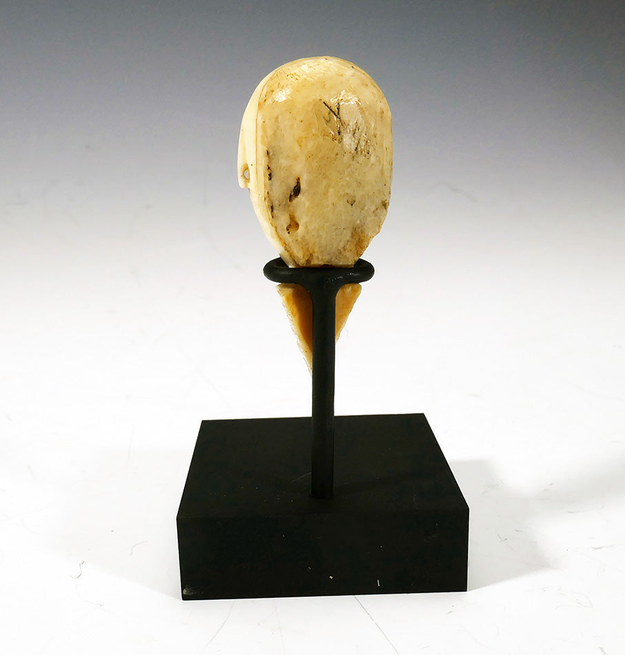 The triangular point was likely originally inserted into a larger effigy representing the complete body. The bust has a nice patina and wear marks on the back of the head indicating years of use.