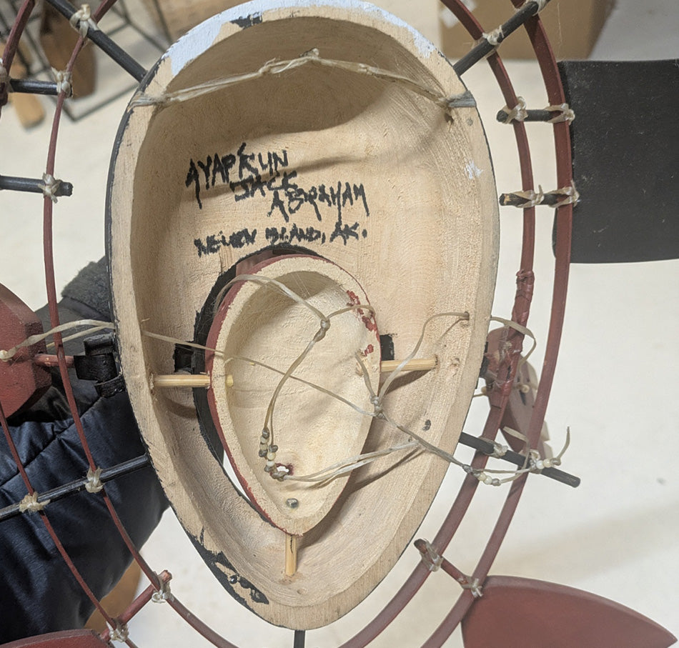 Abraham is originally from Nelson Island, Alaska. This mask is contemporary, not created for ceremonial purposes; nevertheless, it displays the great skill of Yup'ik mask makers.