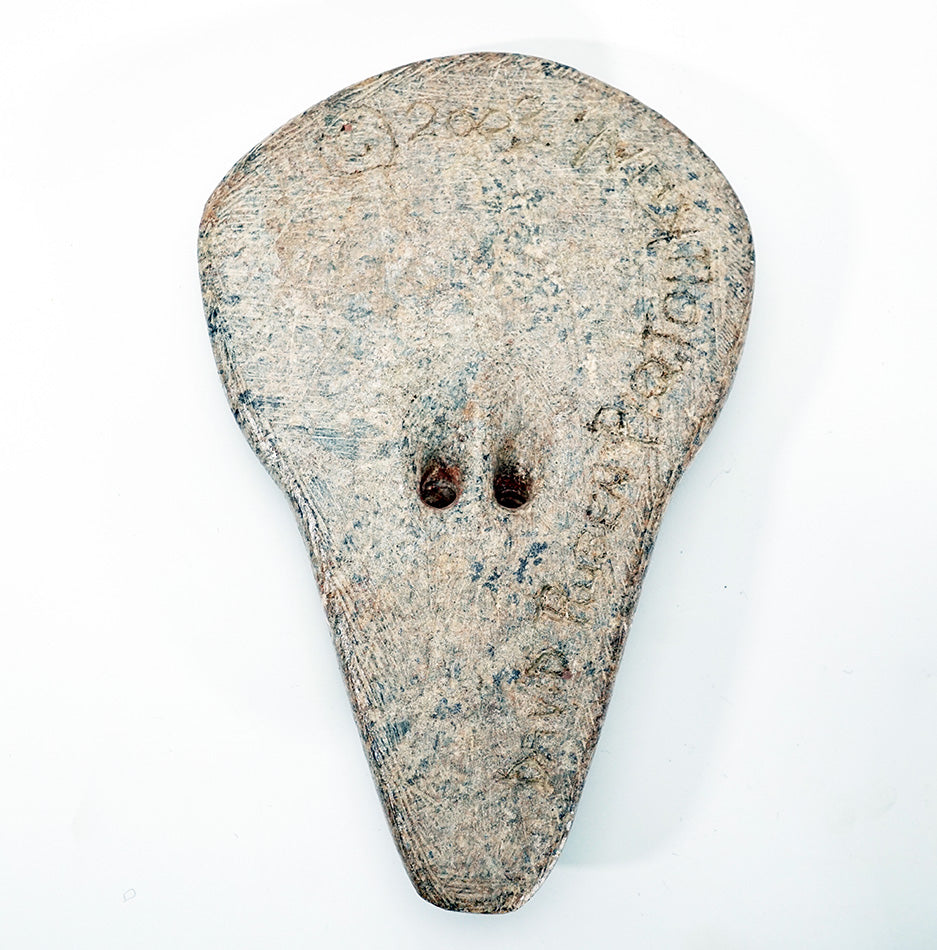 David Ruben Piqtoukun makes faces that are reminiscent of those made by people in ancient cultures and are other-worldly. This face, carved from beautiful Brazilian soapstone, has no eyes, because sometimes people are simply blind to what is around them.