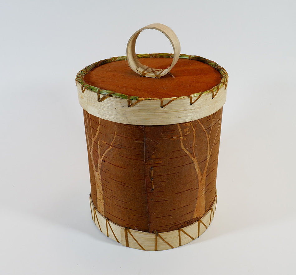 Aron Griffith, Maliseet artist, creates birch bark baskets and mother earth effigies from birch bark, adorned with animals, plants, and traditional Wabanaki designs. The birch tree has long provided Northeast Woodland Indians with material for containers as well as canoes.