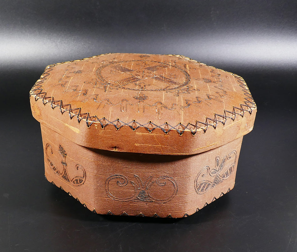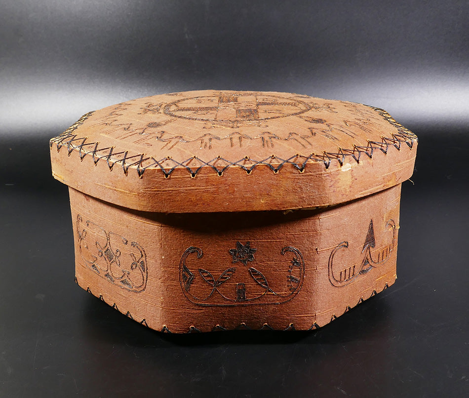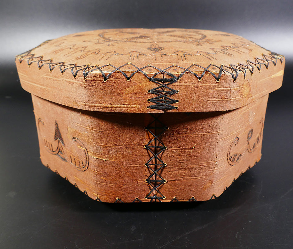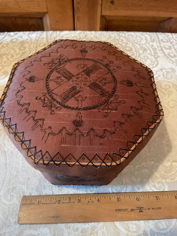 Penobscot Art Richard Love Hexagonal Birch Bark Container