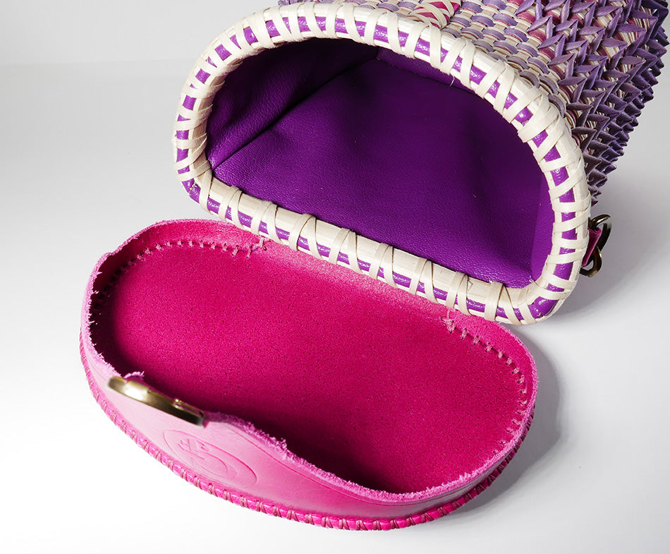 Wabanaki Baskets Gabriel Frey Pink-purple Point Purse Basket Passamaquoddy